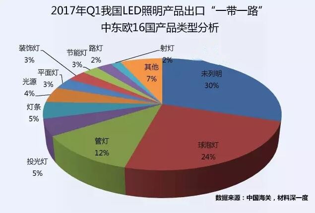 ? 一季度除去29.93%的未列明燈具,球泡燈、管燈和投光燈居三甲之位。03