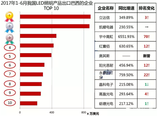 2017年上半年巴西與中國的LED貿易分析