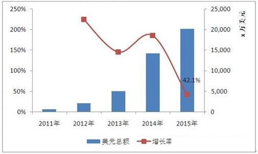 ? 數(shù)據(jù)顯示,2011-2015年我國對印度LED照明產(chǎn)品出口總額增速一直處于高速增長狀態(tài)。