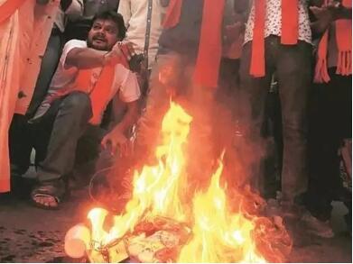去年“排燈節(jié)”期間,抗議者在加爾各答街頭焚燒中國貨