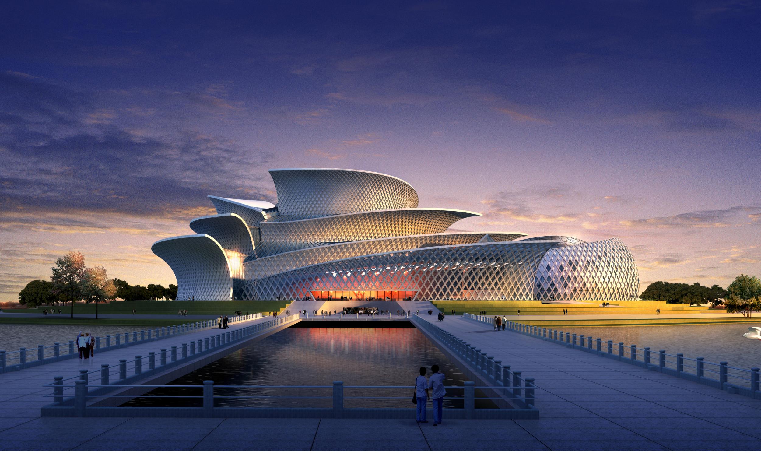 東營雪蓮大劇院地處黃河三角洲的中心城市—山東省東營市,其位于東城勝利大街以東,廣利河以南,南二路以北。緊鄰山東省大城市公園—清風湖,是南二路密集建筑群的首期建筑,是南展區的標志性設施,完全建成后將會成為山東省東營市的地標性建筑。