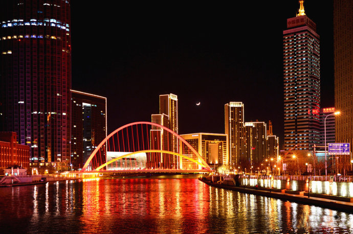 天津地處九河下梢,河道密布,建設(shè)有大量各式各樣的橋梁,天津共有橋梁100多座,其中跨海河橋梁就多達(dá)20多座,每座橋都有不同的樣式。海河上分布著萬國橋、赤峰橋、永樂橋、大沽橋、北安橋、進(jìn)步橋等。