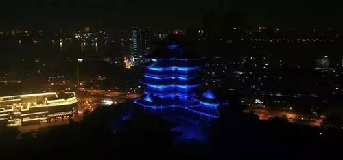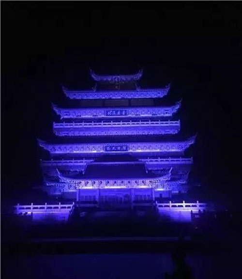 當天晚上,黃鶴樓、岳陽樓、上海東方明珠、水立方等多個地標建筑點亮了藍燈,為“星星的孩子”送去關愛。
